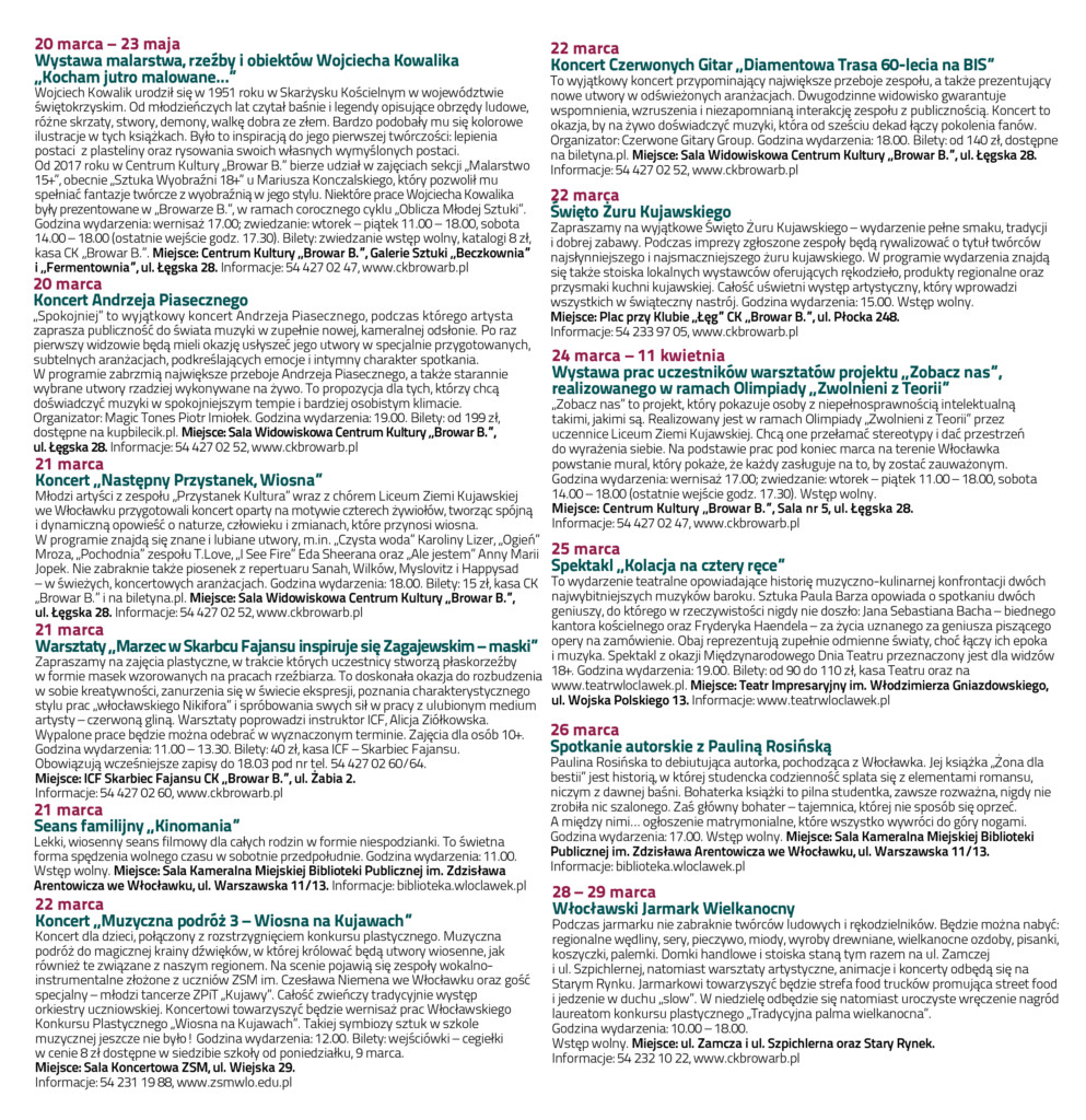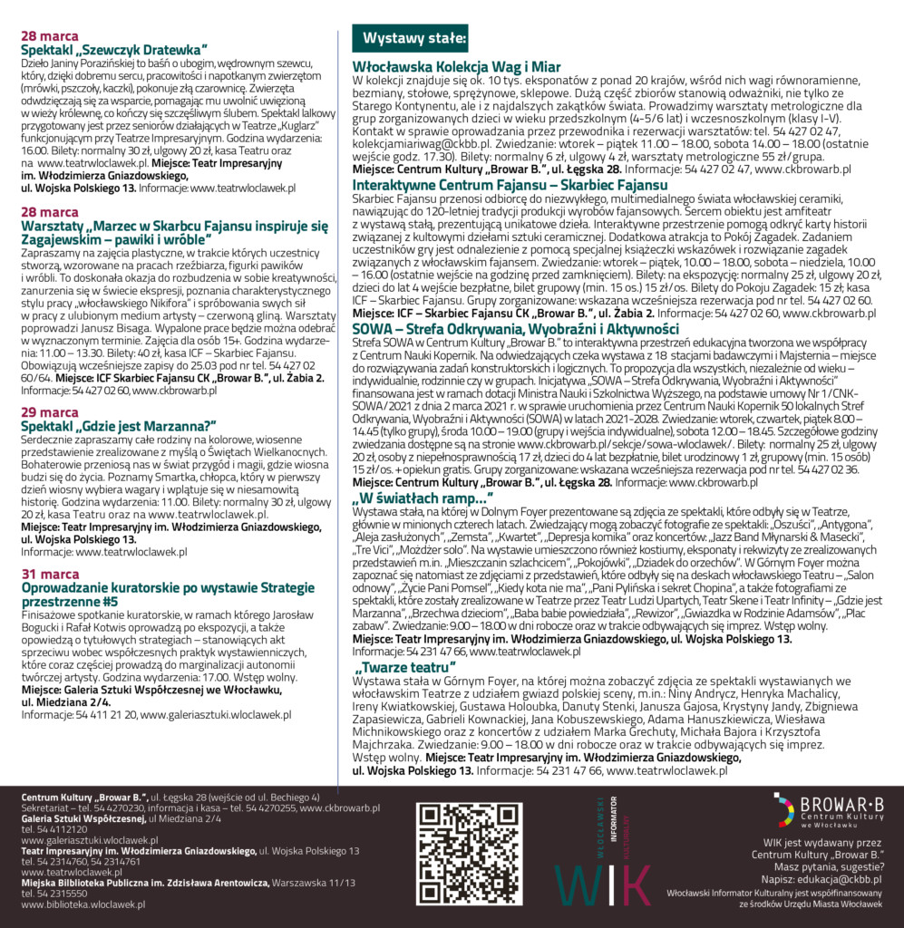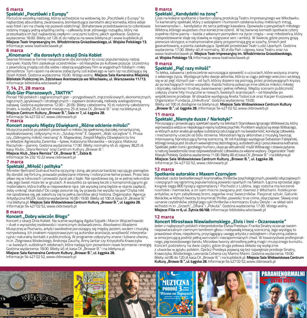 Zapraszamy do zapoznania się z Włocławskim Informatorem Kulturalnym na marzec 2026.