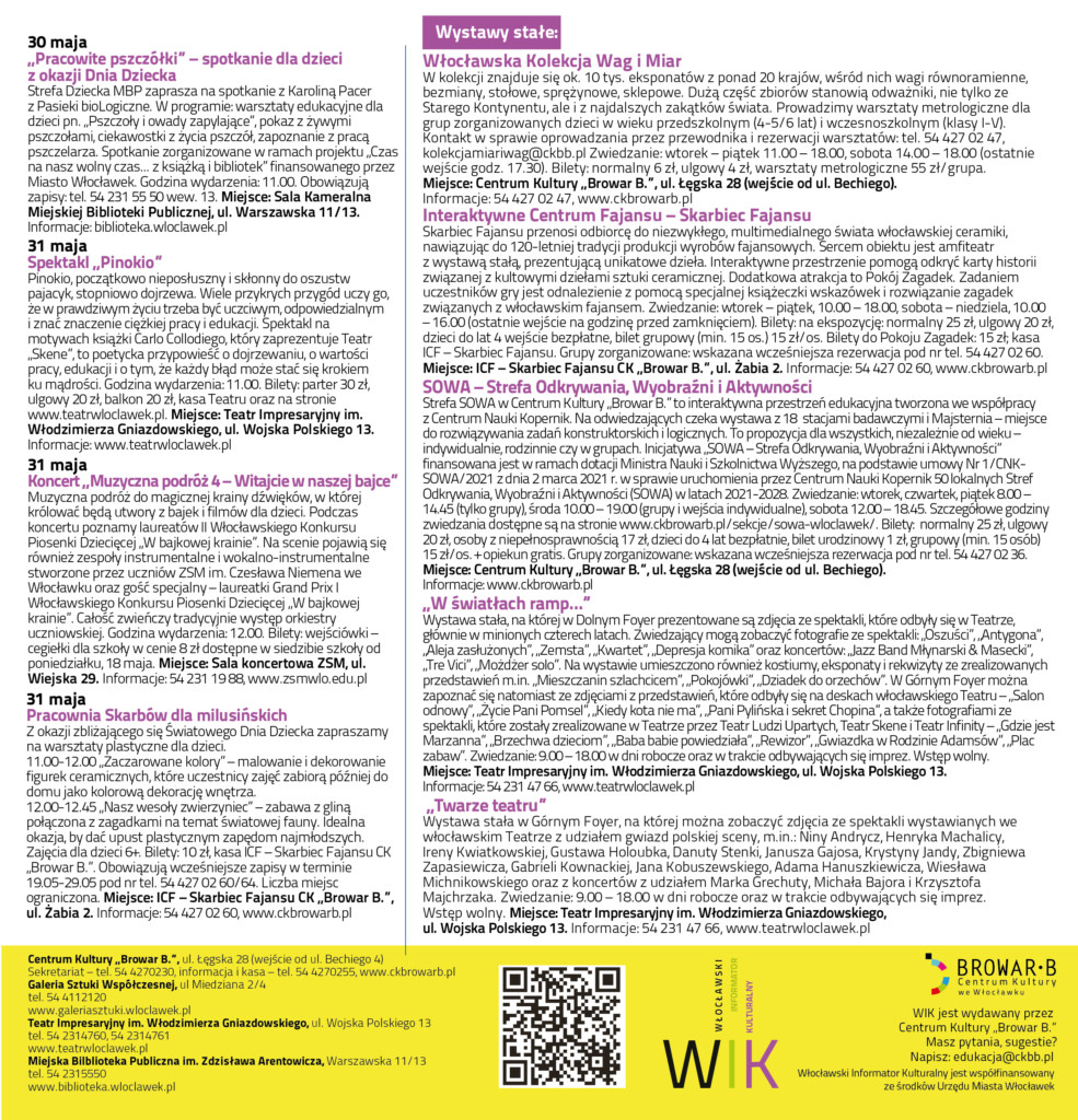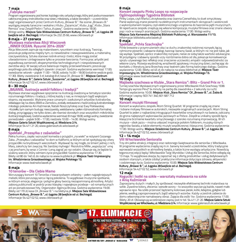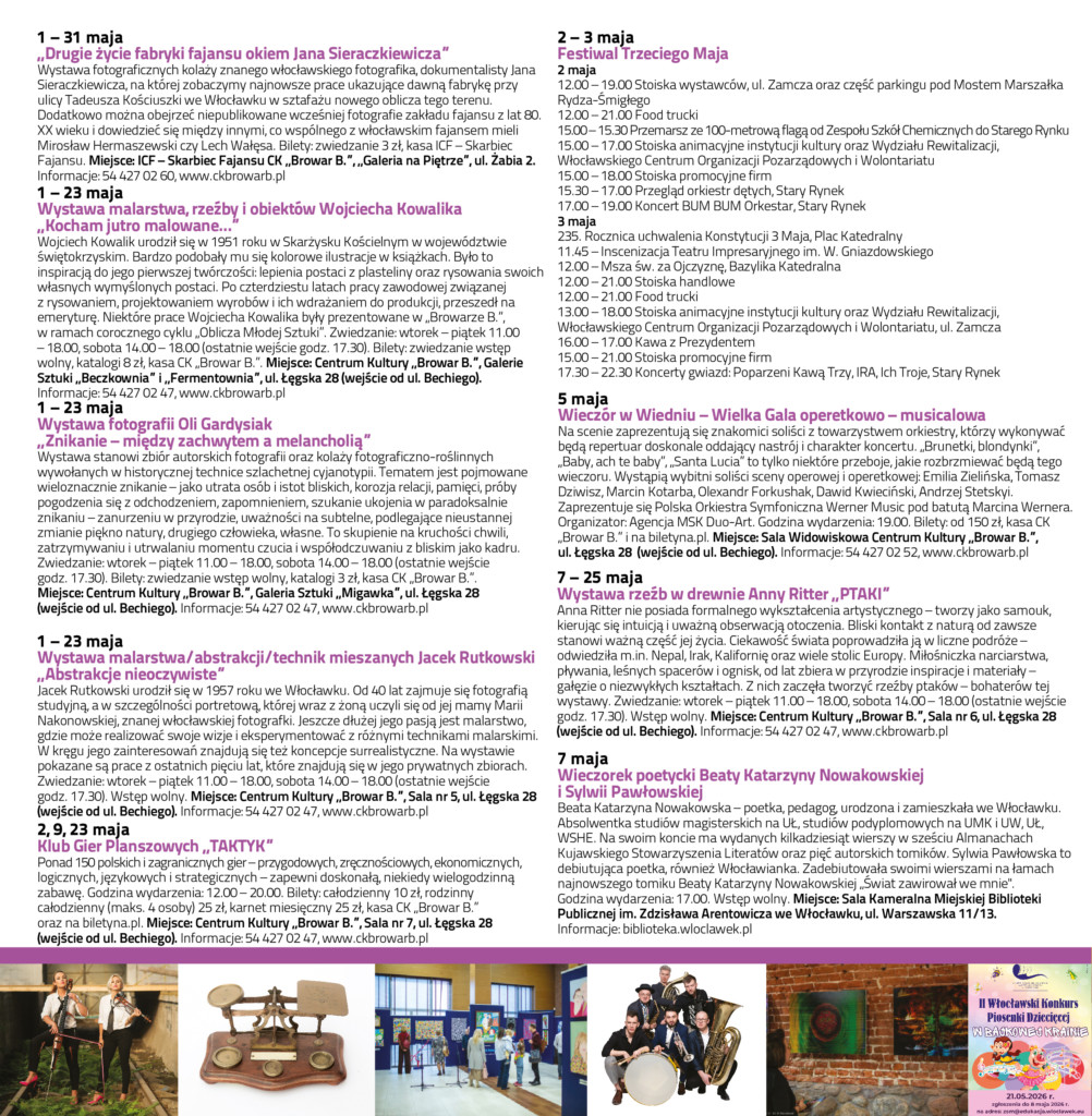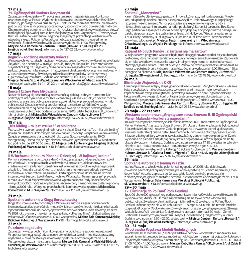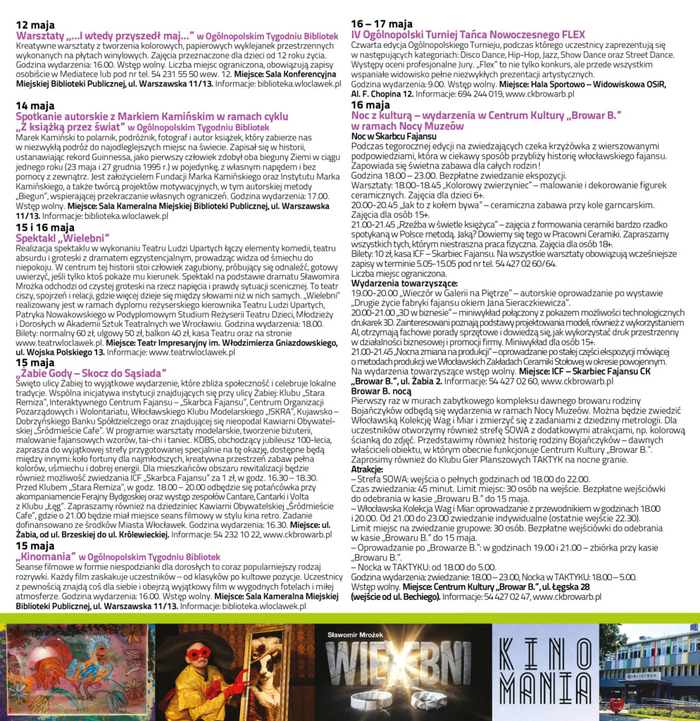 WIK / MAJ 2026Data dodania 29 kwietnia 2026 Zapraszamy do zapoznania się z Włocławskim Informatorem Kulturalnym na maj 2026. Pozostałe aktualności Włocławska Scena Młodych 2026Data dodania 29 kwietnia 2026 ZAPYTANIE OFERTOWEData dodania 29 kwietnia 2026 Młodzi zmieniają rzeczywistość – projekt „Pomag(AI)”Data dodania 28 kwietnia 2026 Komentowanie jest zamknięte.